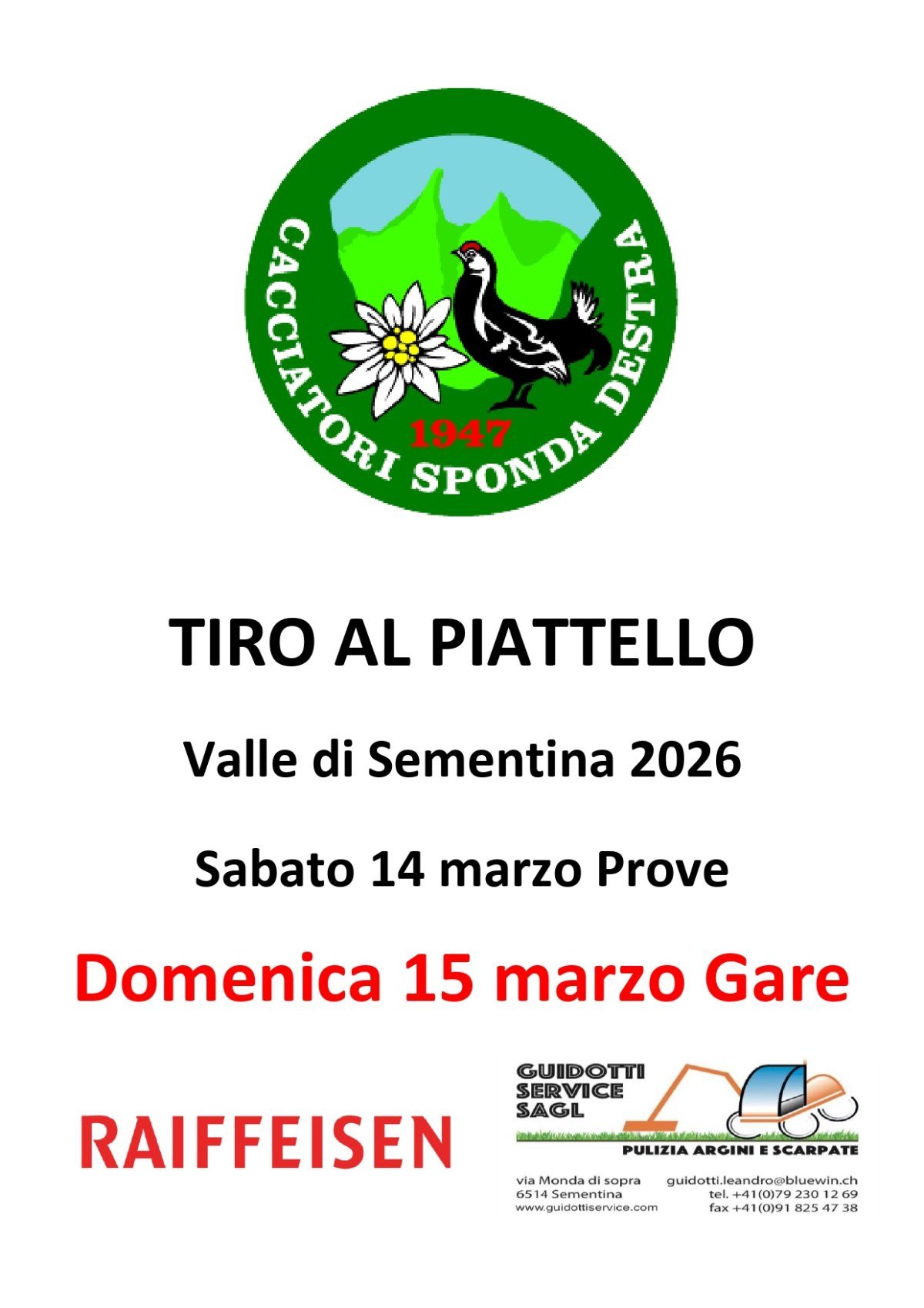 Tiro al piattello Valle di Sementina 14 e 15 marzo 2026